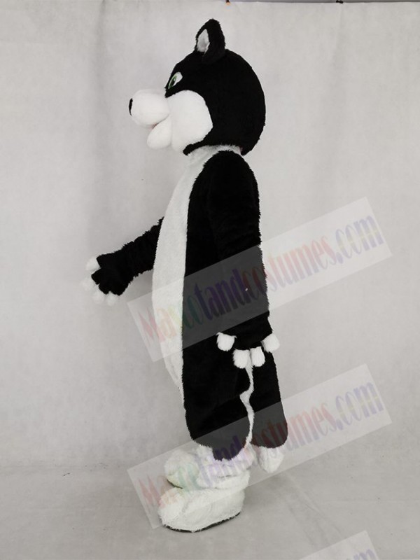 Black and White Border Collie Dog with Green Eyes Mascot Costume