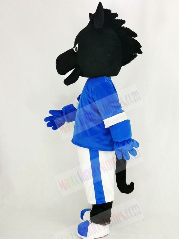 • Black Horse in Blue Mascot Costume Animal	Black Horse in Blue Mascot Costume Animal