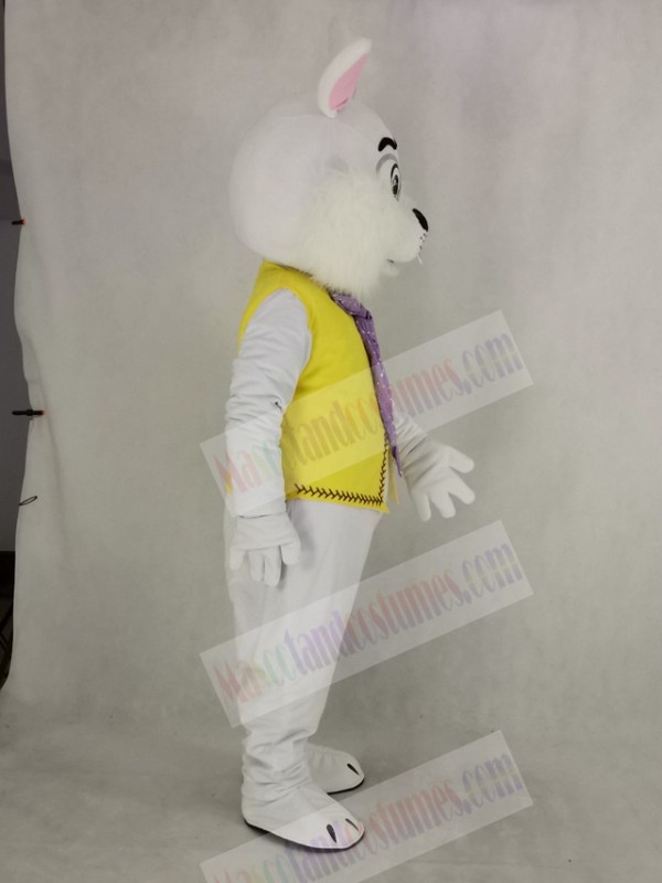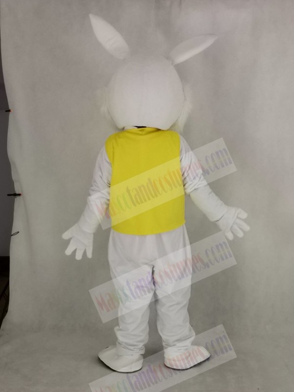 White Easter Bunny Rabbit in Yellow Vest Mascot Costume