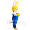 Yellow Rabbit Easter Bunny with Blue Overalls Mascot Costumes Animal