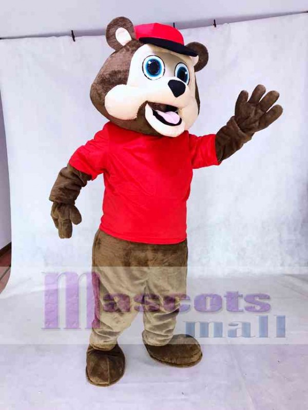 Brown Bear with a Red Hat Mascot Costume Animal