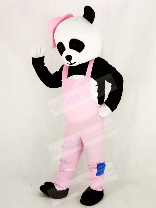 Panda with Pink Overalls and Hat Mascot Costume Cartoon