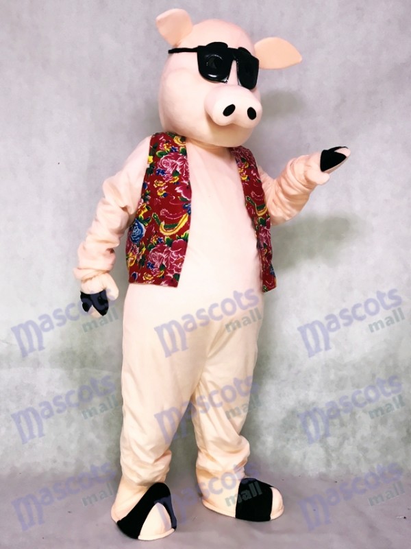 Pig Piglet Hog with Hawaiian Vest & Sunglasses Mascot Costume