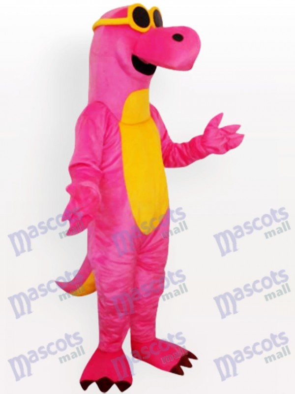 Pink Dragon with Yellow Belly and Glasses Adult Mascot Costume