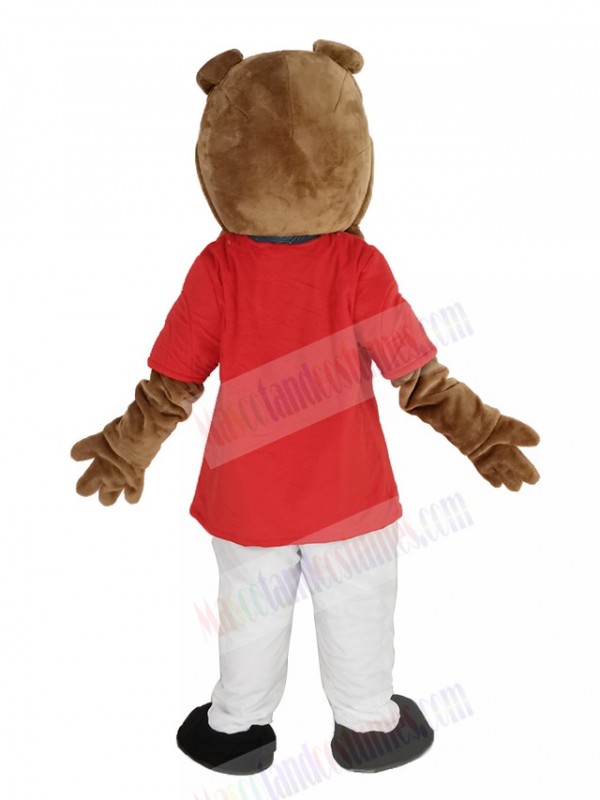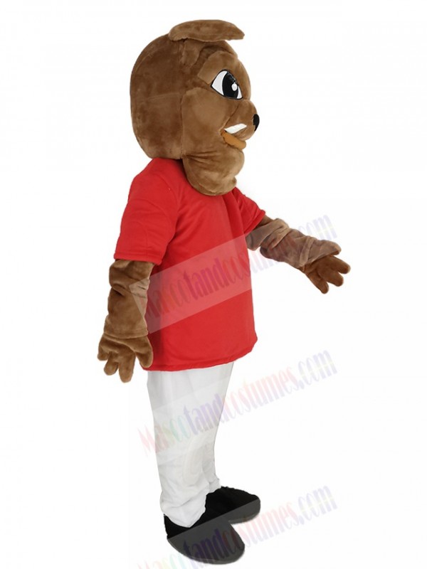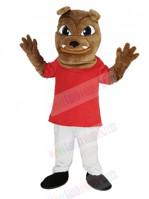 Bulldog in Red T-shirt Mascot Costume