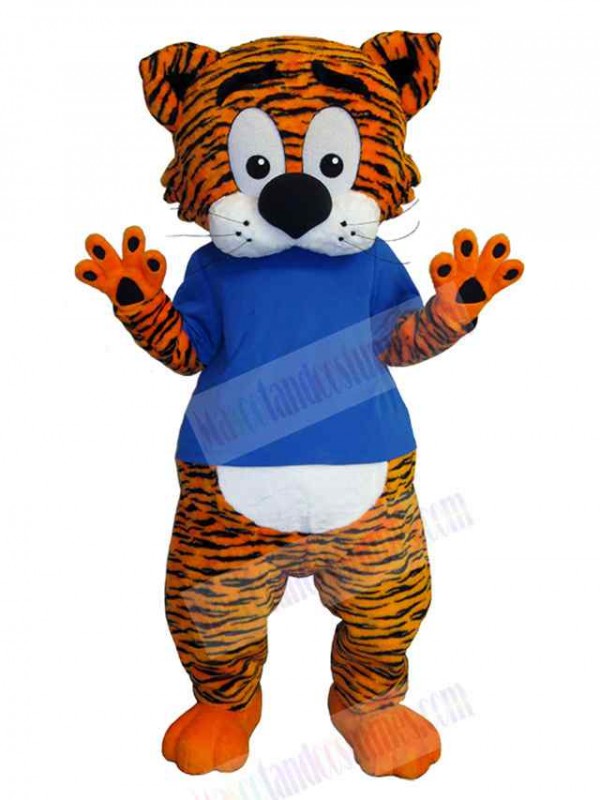 Stripe Tiger Mascot Costume Animal in Blue T-shirt