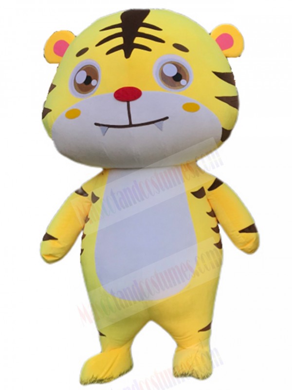 Calm Yellow Tiger Mascot Costume with White Belly Cartoon