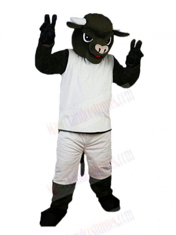 Black Bull Mascot Costume in White Basketball Jersey Animal