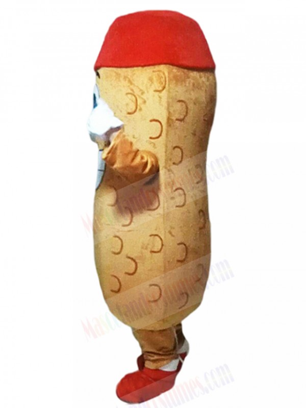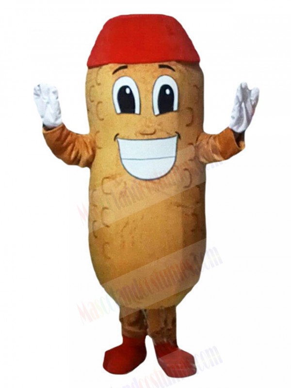 Happy Peanut Mascot Costume with Red Hat Plant