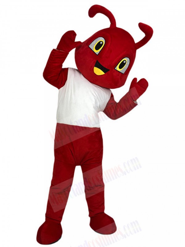 Red Ant Mascot Costume in White Shirt Animal
