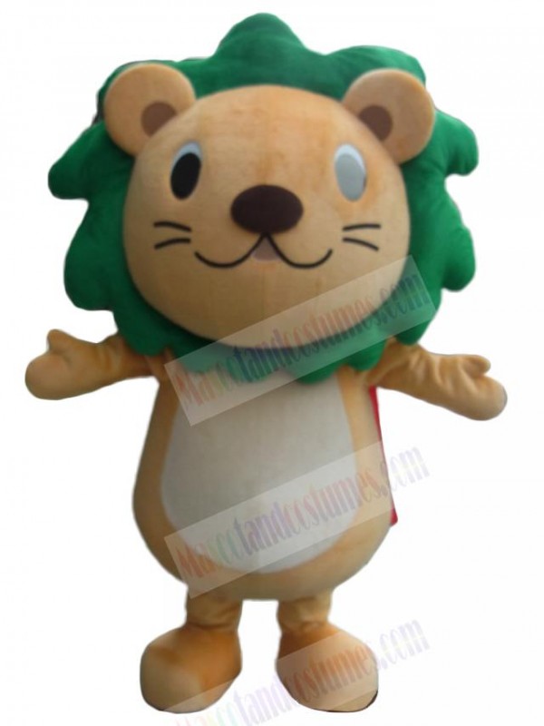Cute Green Mane Brown Lion Mascot Costume Animal