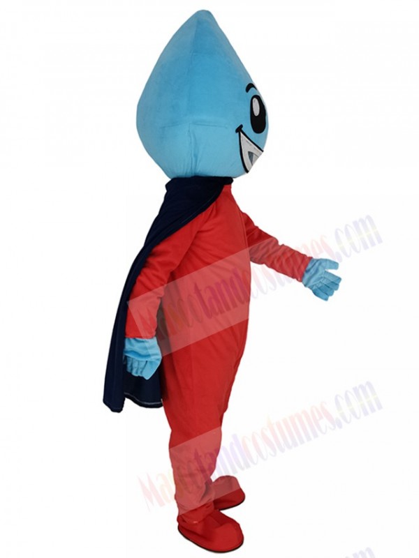 Water Drop Superman Mascot Costume with Dark Blue Cloak