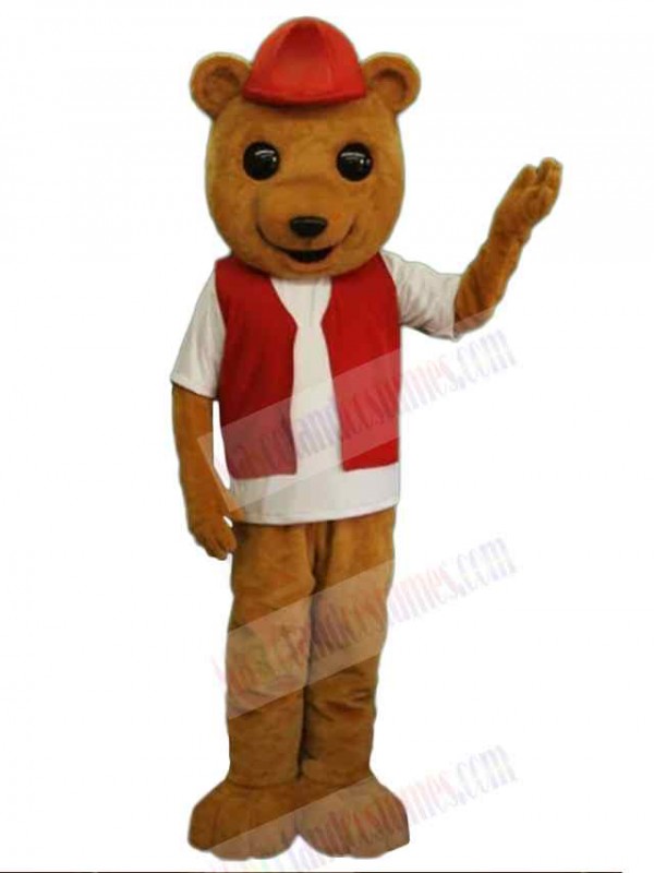 Bear with Red Vest Mascot Costume Animal