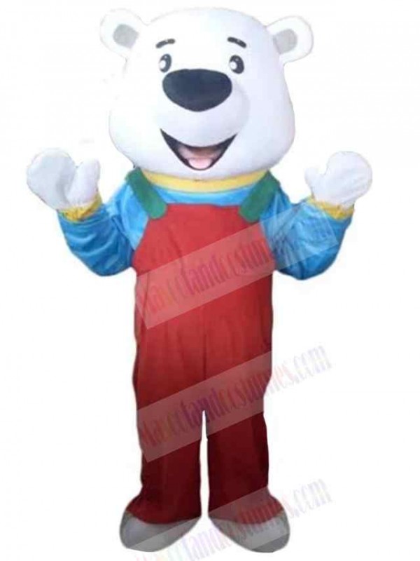 Polar Bear with Red Overalls Mascot Costume Animal