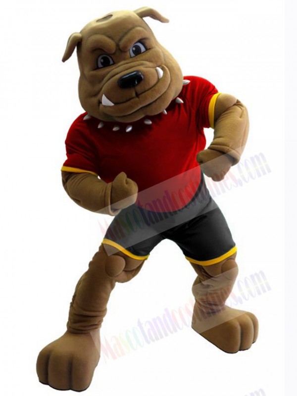 Brown Bulldog Mascot Costume Animal in Red Jersey