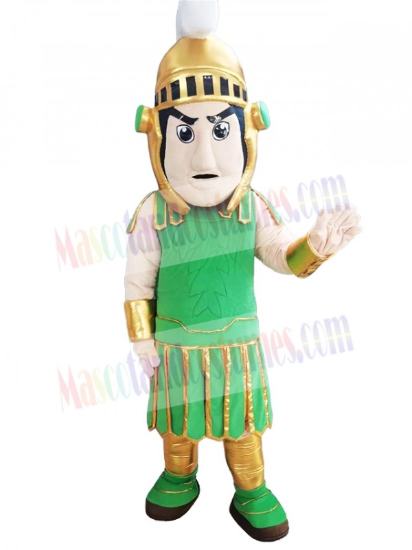 Green Spartan Trojan with Golden Helmet Mascot Costume People