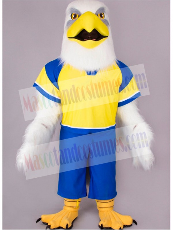 Bald Eagle in Yellow-and-Blue Sports Suit Mascot Costume