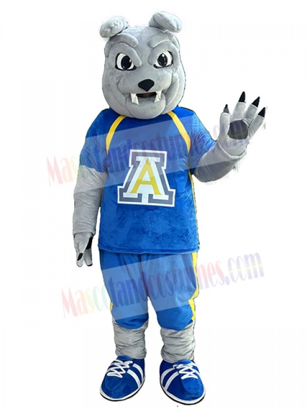 Bulldog Dog in Blue Sports Shirt Mascot Costume Animal