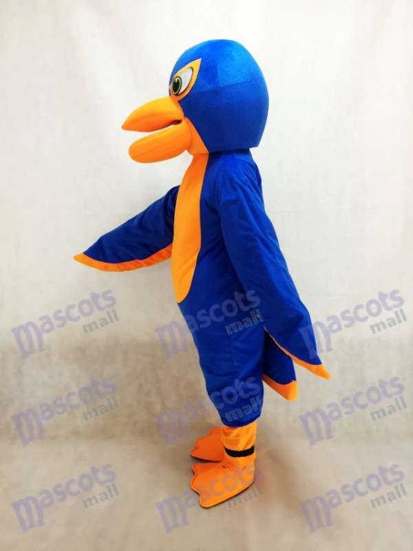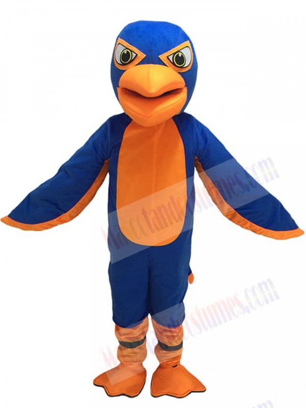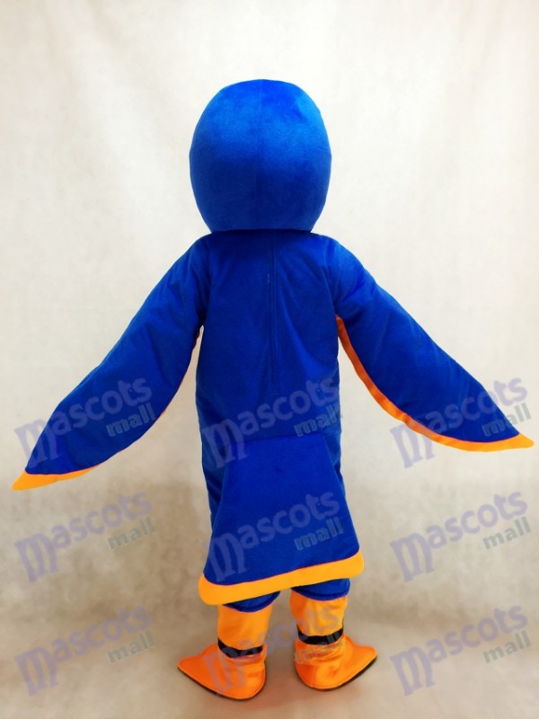 Friendly Royal Blue and Orange Falcon Mascot Costume