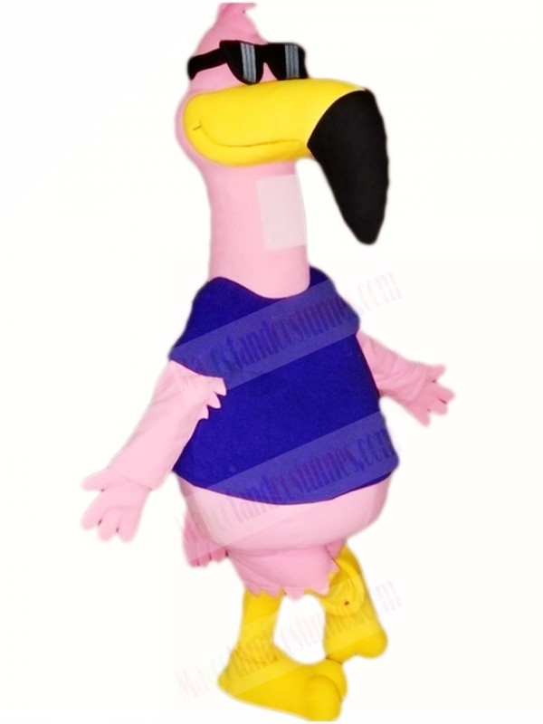 Cool Pink Flamingo with Sunglasses Mascot Costumes Bird Animal