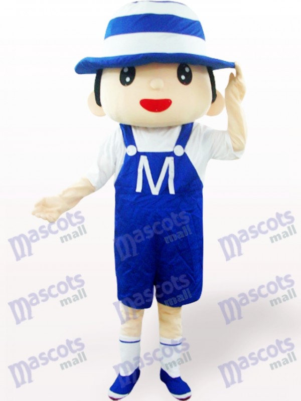 Blue Bonnet Boy Cartoon Adult Mascot Costume