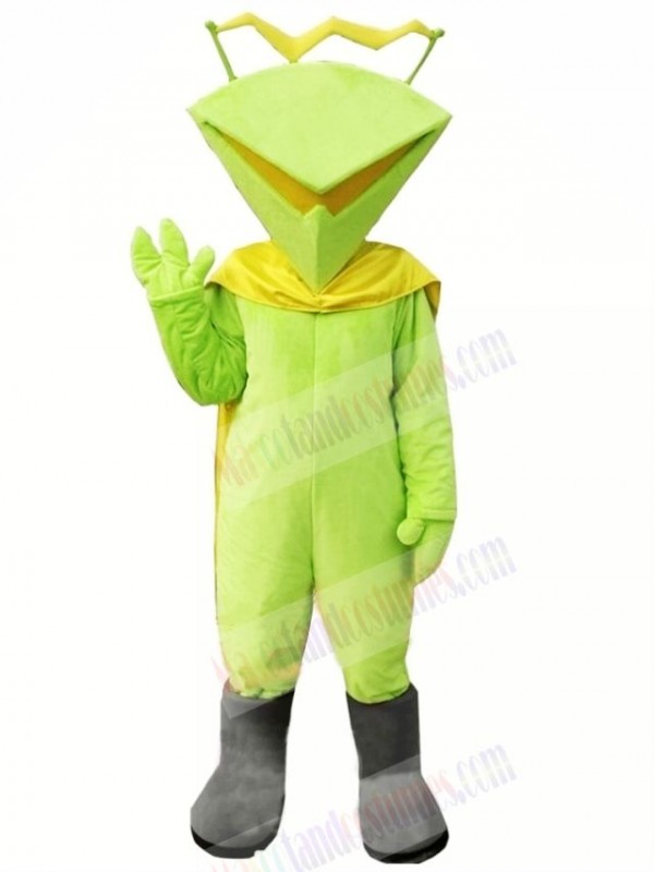 Funny Martian with Green Coat Mascot Costume Cartoon