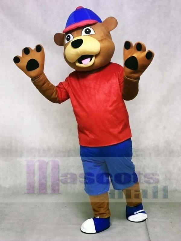 Red Vest Happy Brown Animal Bear Mascot Costumes Animal