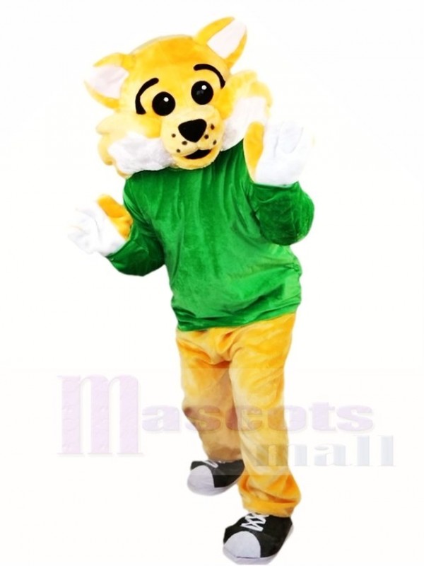 Yellow BobCat WildCat in Green Shirt Mascot Costumes Animal